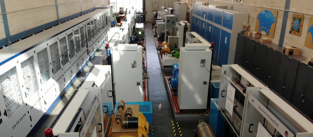 • Zwei Maschinensäle mit insgesamt ca. 1000 kVA-Trafo-Einspeisung, Belastungseinrichtungen für Maschinen bis ca. 250 kW, Sinusumformer für Drehstrom 40 kVA – 400 / 800 Hz, Hochspannungstrafo 250 kVA – 3 / 5/ 6 kV, unterschiedliche Prüffeld-Umformer zur Erprobung aller Arten von elektrischen Maschinen mit oder ohne Umrichterspeisung