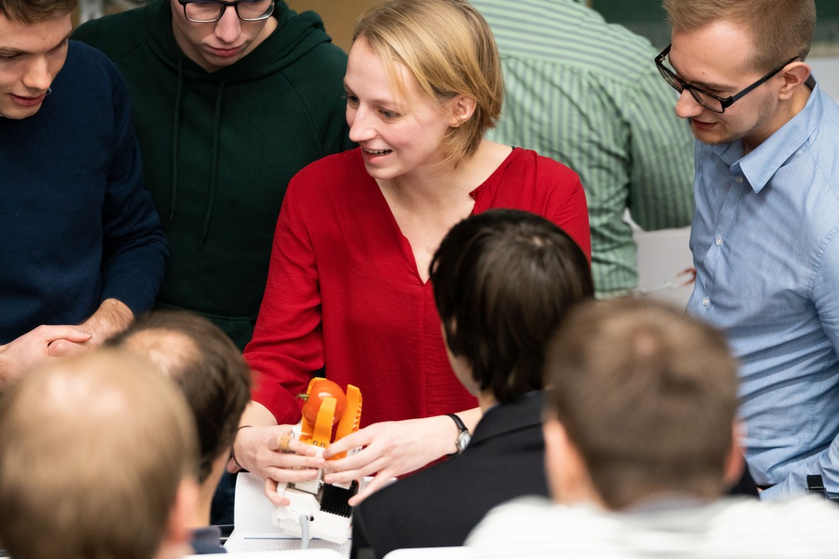 Bei ihren Entwicklungen im Rahmen des Seminars Praktische Entwicklungsmethodik (PEM) gab es strenge Vorgaben: So durften die Kosten für den Greifer 150 Euro nicht übersteigen. Auch die elektronischen Anforderungen des Roboterknickarms mussten beachtet werden. In diesem Jahr stand den Studierenden erstmals auch ein 3D-Druckbausatz zur Verfügung, so dass sie flexibler und kreativer als in den vergangenen Jahren agieren konnten.