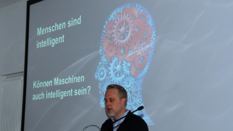 Der Dekan, Prof. Dr.-Ing. Tran Quoc Khanh, führte kurz in die Entwicklung der künstlichen Intelligenz ein. Als Geburtsstunde der Künstlichen Intelligenz und der Kognitionswissenschaften wird eine Konferenz am Dartmouth College im US-Bundesstaat New Hampshire angesehen. Nach ein paar Rückschlägen in der Entwicklung, die anschaulich als ‚KI-Winter‘ bezeichnet werden, ist die KI im Alltag angekommen. Seit 2011 (Einführung von Apples Siri) interagieren unsere Smartphones sprachgesteuert mit den Nutzer*innen und in der Zwischenzeit sind KI-Systeme beispielsweise in der Lage, telefonisch Termine zu vereinbaren. Auch die maschinelle Übersetzung von Texten hat sich durch KI sehr stark verbessert und Fahrer-Assistenzsysteme sind ohne KI undenkbar.