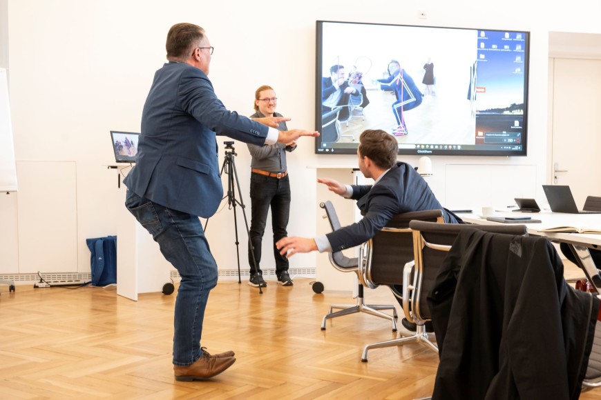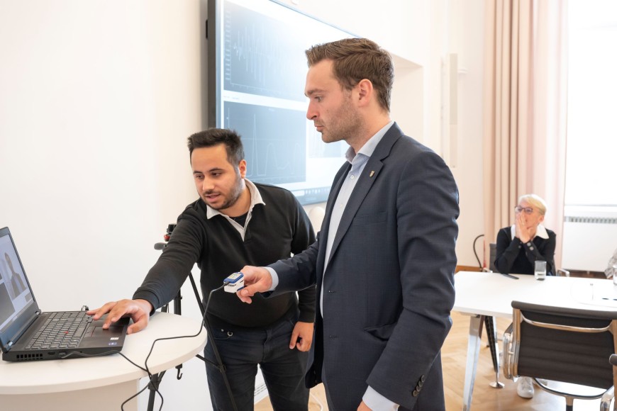 Sebastian Dill and Jad Haidamous had the opportunity to present their research to Lucas Schmitz and Peter Franz from the Hessian State Parliament in September. Jad Haidamous presented the demonstrator for camera-based pulse measurement (PPGI), while Sebastian Dill presented his research on camera-based motion analysis. Further information about the visit can be found in the department’s article (https://www.etit.tu-darmstadt.de/fachbereich/etit_newsdetails_264960.de.jsp).
