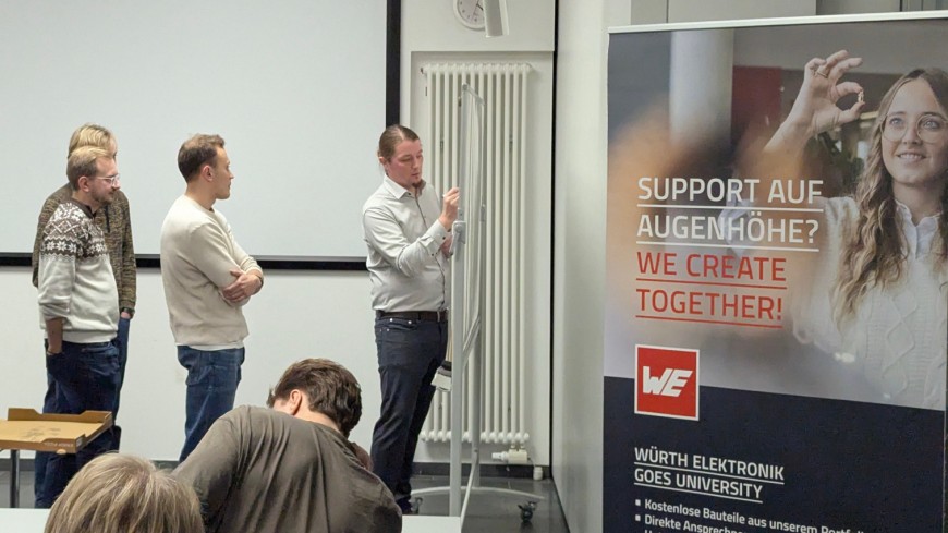 Im Rahmen des Projektseminars Hands-on Sensor Systems hielt Würth Elektronik einen spannenden und äußerst informativen Vortrag über elektromagnetische Verträglichkeit (EMV) und wirksame Gegenmaßnahmen gegen Störungen. Die Veranstaltung mit insgesamt 50 Teilnehmern konzentrierte sich auf typische Störquellen in Leiterplatten und Messaufbauten sowie auf praktische Strategien zur Reduzierung dieser Effekte in realen Anwendungen.