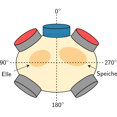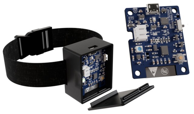 Das hier dargestellte Armband verwendet so genannte vibrotaktile Illusionen, um mit nur vier Aktoren Vibrationen um den gesamten Armumfang zu erzeugen. Weitere Informationen dazu in der zugehörigen Veröffentlichung.