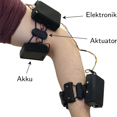 Exoskelette sind tragbare robotische Systeme, die den Menschen hinsichtlich Leistung und Zielsicherheit unterstützen können. Ein robotisches System am menschlichen Arm kann bspw. die Kraft und Genauigkeit sowohl eines gesunden als auch eines körperlich eingeschränkten Menschen verbessern. Die Vorteile aus beiden Welten vereint, lassen sich intelligente Mensch-Maschine-Systeme entwickeln zur Leistungsunterstützung, der Rehabilitation, der Teleoperation oder zur haptischen Interaktion in Szenarien der Virtual Reality.