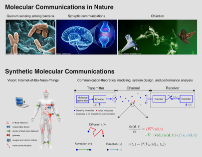 Synthetic molecular communication (MC) is a new communication engineering paradigm, where information is encoded into the properties of molecules, e.g., their number, type, and time of release, which is in contrast to the conventional radio frequency (RF) communication systems that embed information in the properties of electromagnetic waves, e.g., their amplitude, frequency, and phase. MC is ubiquitous in natural biological systems, which lends credibility to its potential for biomedical applications such as targeting substances, smart drug delivery, and designing lab-on-a-chip systems. A network of nanomachines communicating with each other via MC can help realize the Internet of Bio-NanoThings and enable nanomachines to perform complex tasks. This lecture introduces the key principles of synthetic MCs, the mathematical characterization of the underlying processes (e.g., diffusion, advection, reaction), and the design of basic communication functions (e.g., modulation, estimation, detection schemes). State-of-the-art implementations of synthetic MC systems will be discussed and analyzed. In addition to learning an emerging new communication technology, this lecture offers students the opportunity to significantly deepen their knowledge of the fundamentals of digital communication systems by reflecting on and “re-learning” the entire communication blocks in the exciting world of biological/chemical materials.
