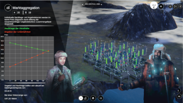 In der Wirtschaftssimulation „Arctic Economy“ startet der Spieler in einem dystopischen Szenario. In der durch Eisschmelze urbaren Antarktis muss er nun eine effiziente Volkswirtschaft aufbauen.