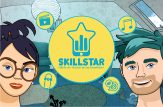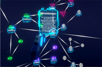 „Dagmars Digital Day“ ist eine Visual Novel, die eine unterhaltsame Geschichte um eine Gruppe Studierender mit einem Self-Assessment zur Digitalkompetenz der Spielenden verknüpft.