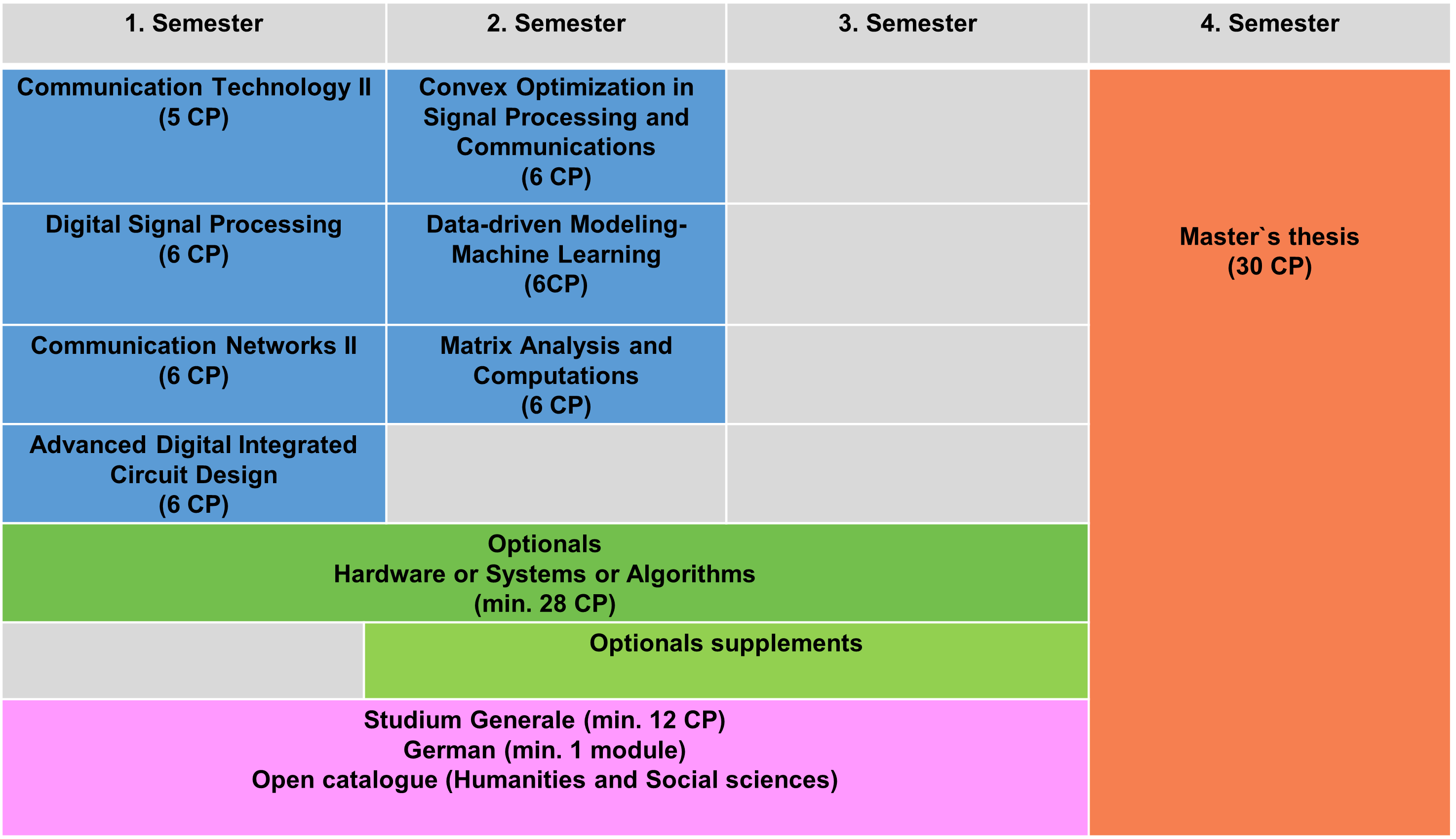 A sample study plan is available for each specialisation, providing you with an overview of the recommended course of study, the sequence of modules and the ECTS distribution. These plans serve as a guide and help you to plan your studies efficiently and purposefully.